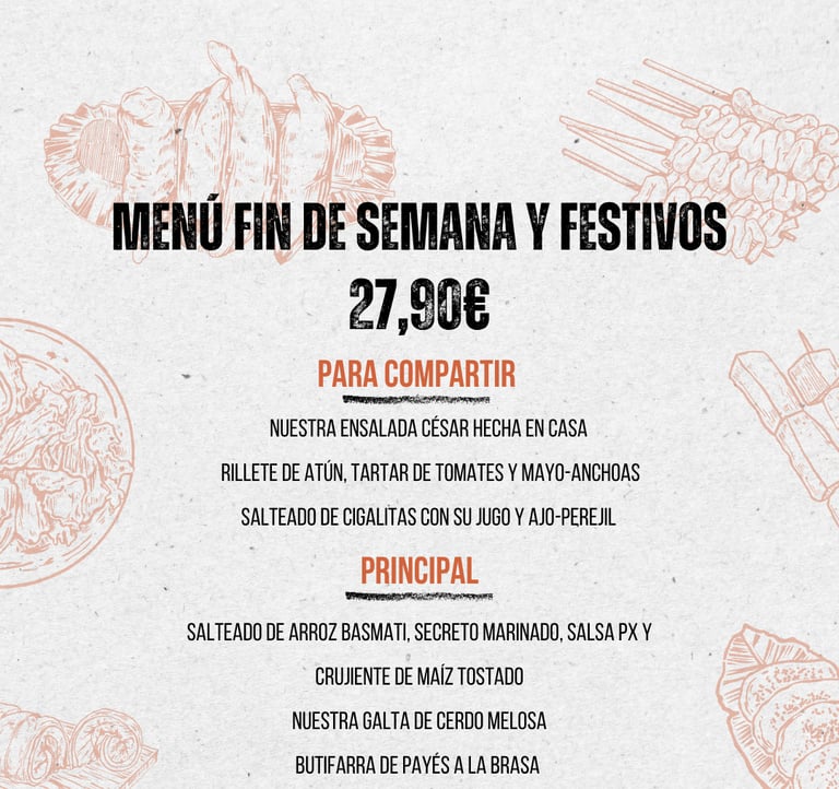 Si has llegado hasta aquí, seguramente estás buscando un menú de brasería en Blanes que combine tradición, sabor y buenos precios. En La Brasería de Samu nos tomamos eso muy en serio. Por eso, hemos creado una carta que recoge lo mejor de la cocina a la brasa, los guisos de siempre y los bocatas que te hacen cerrar los ojos con cada bocado.